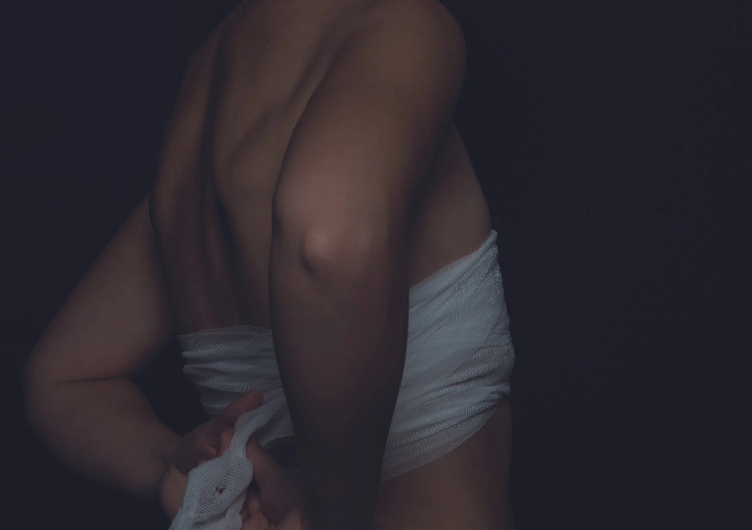 La lumière et l’ombre sculptent cette chair, laissant au spectateur la responsabilité de deviner, de projeter, de désirer.